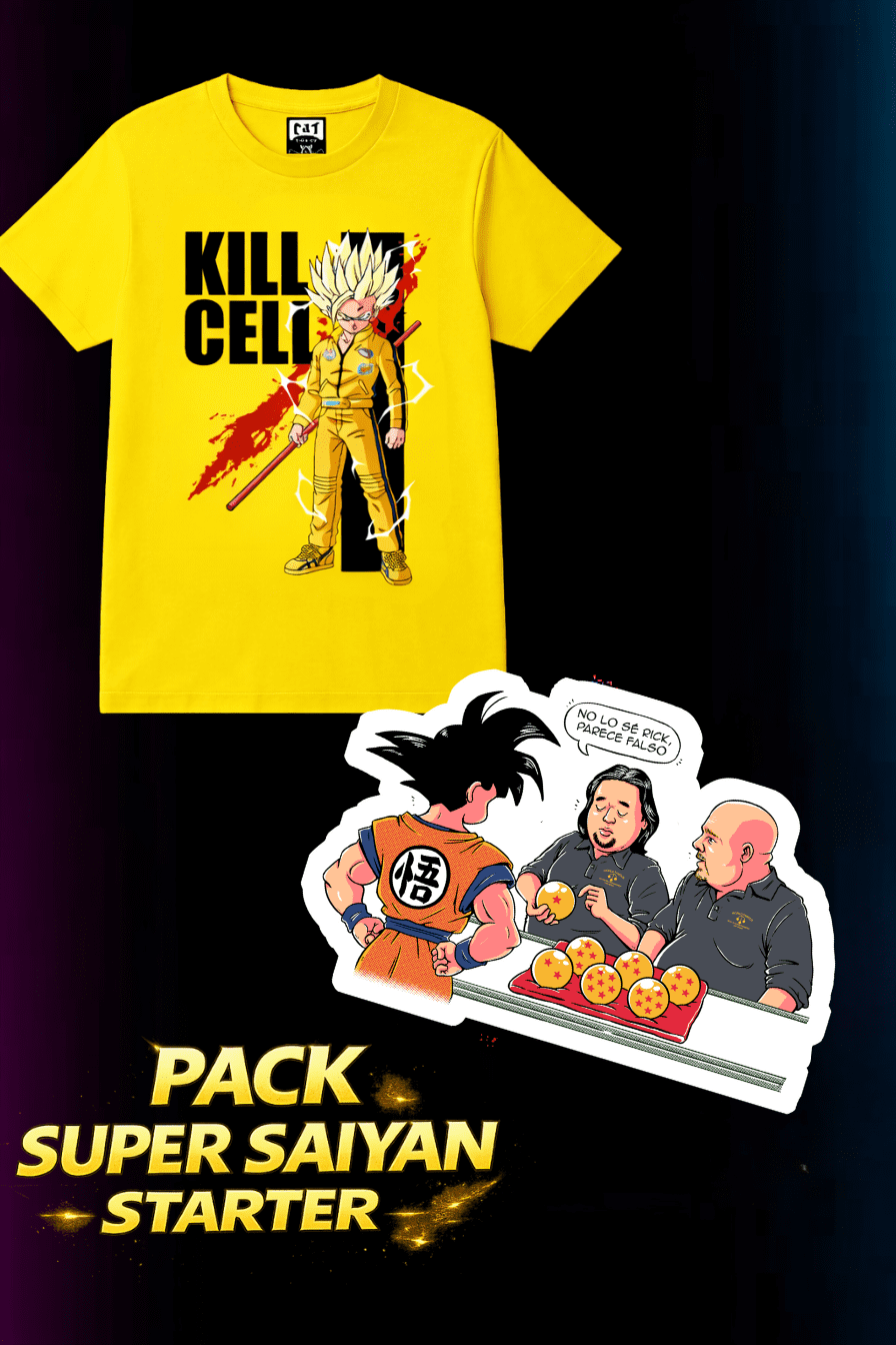 Este pack incluye camiseta + sticker, una combinación ideal para personalizar tu día a día con la energía de Kill Cell y el humor icónico de Pawn Shop.