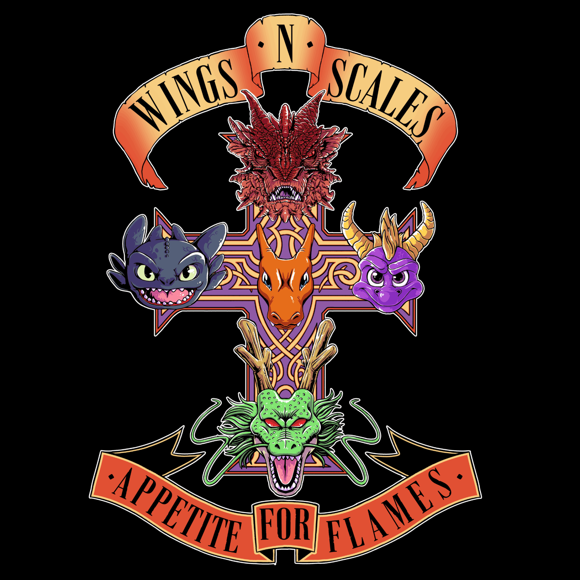Los dragones más icónicos del multiverso en homenaje al rock más legendario. A3 premium + plastificado.